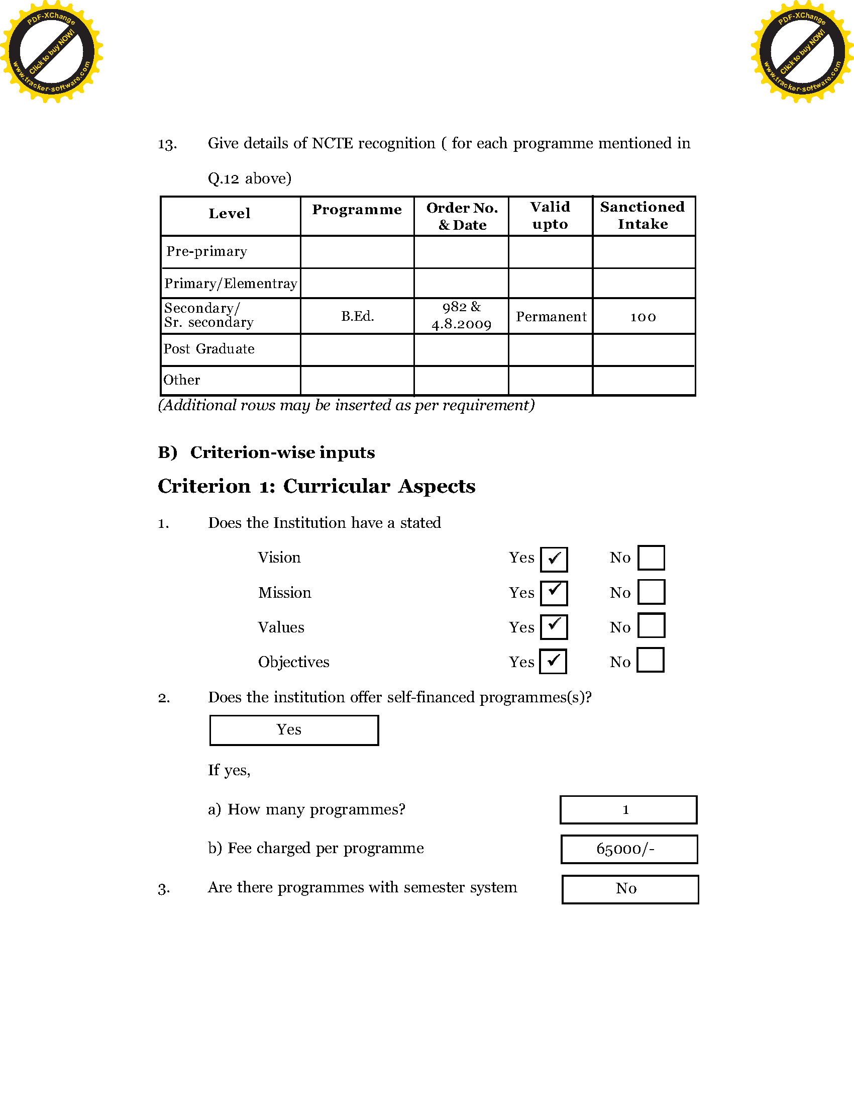 Ganauri Ramkali Teacher's Training College, Nawada (Bihar) - SAR (NAAC)