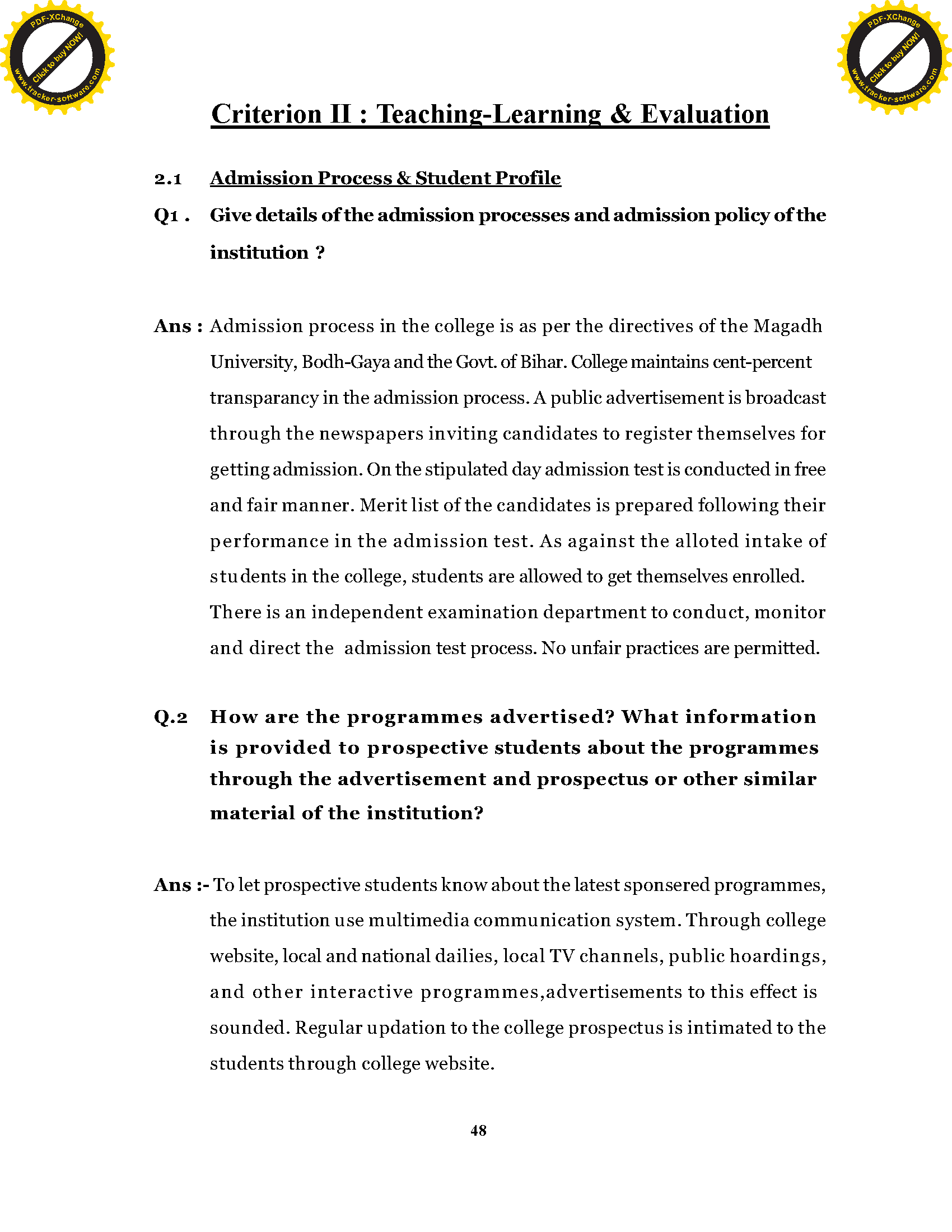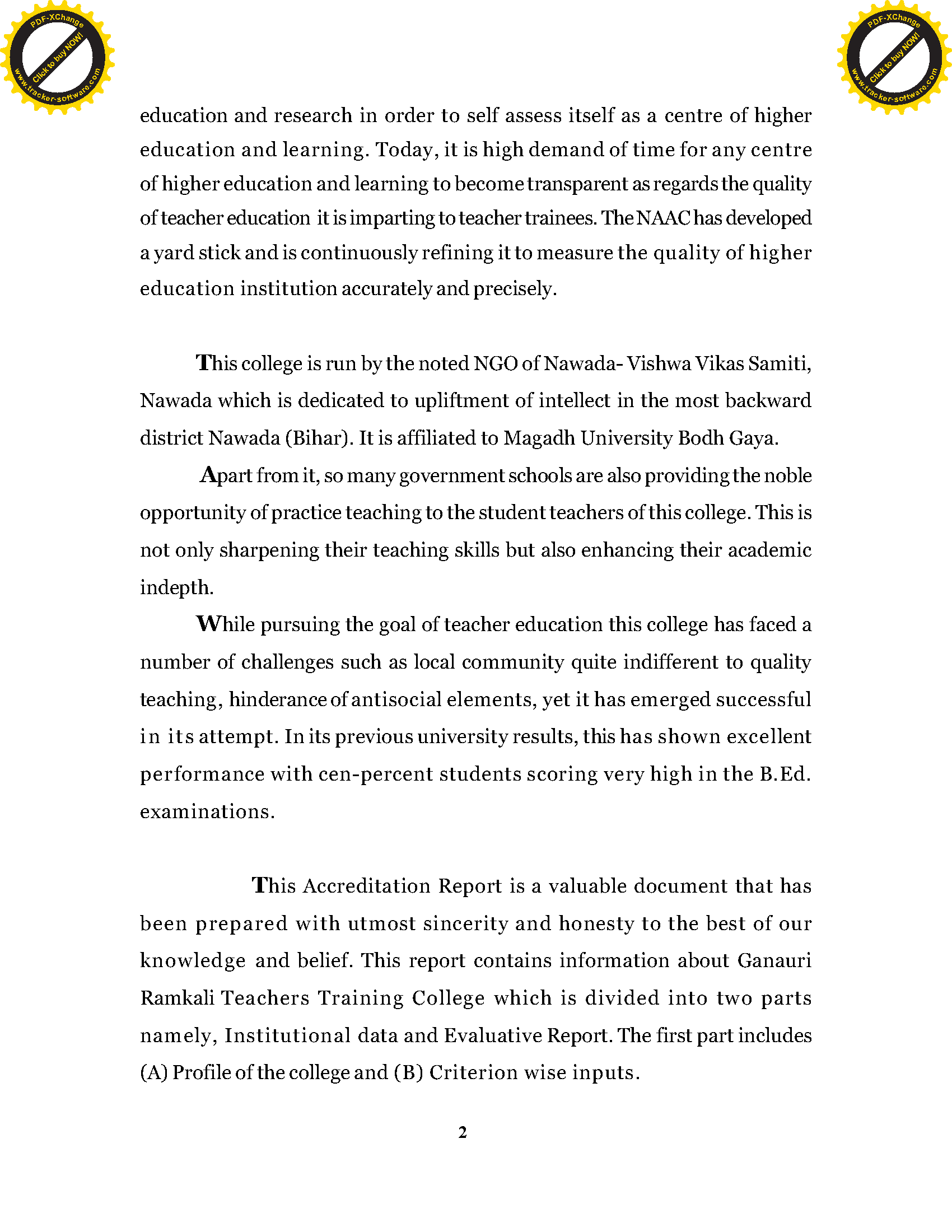 Ganauri Ramkali Teacher's Training College, Nawada (Bihar) - SSR (NAAC)
