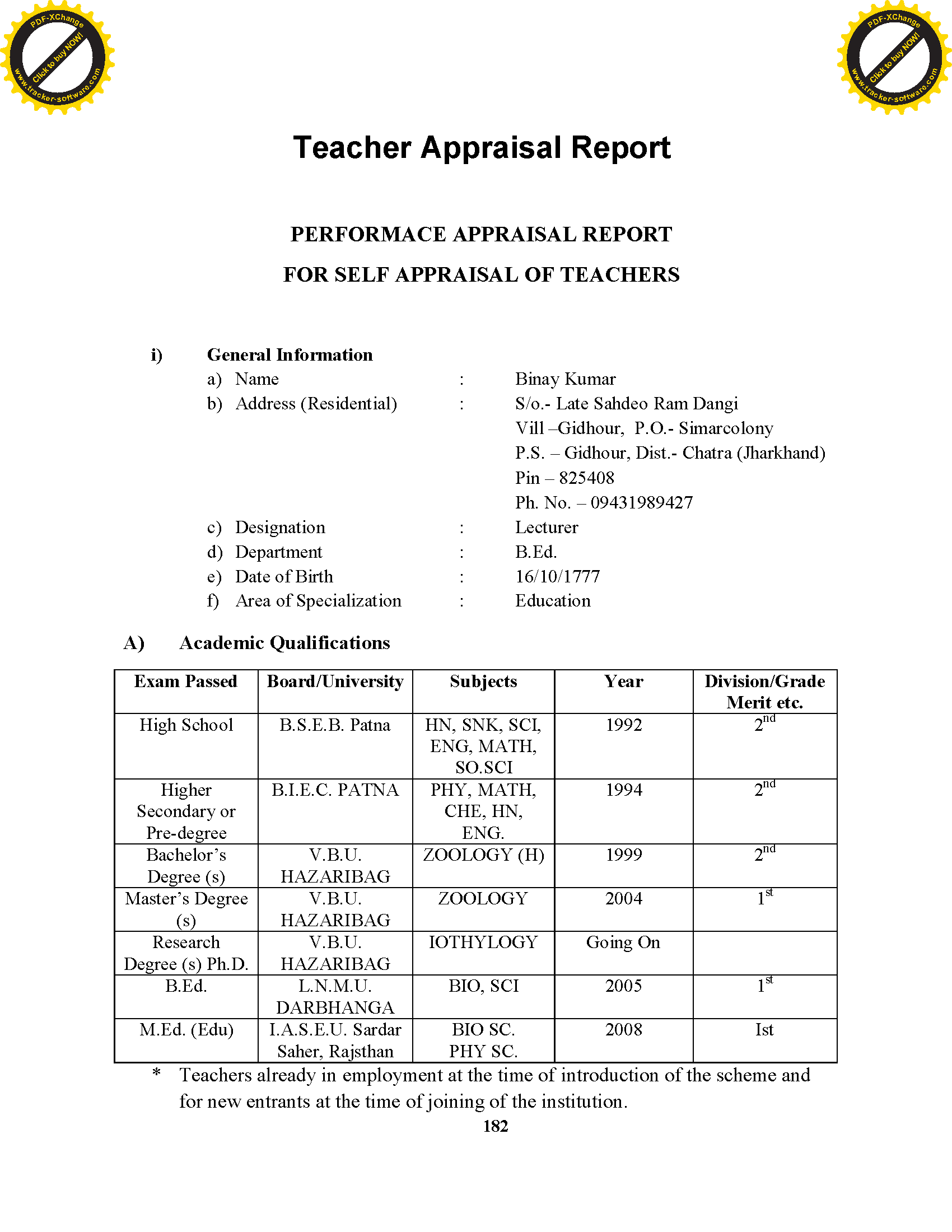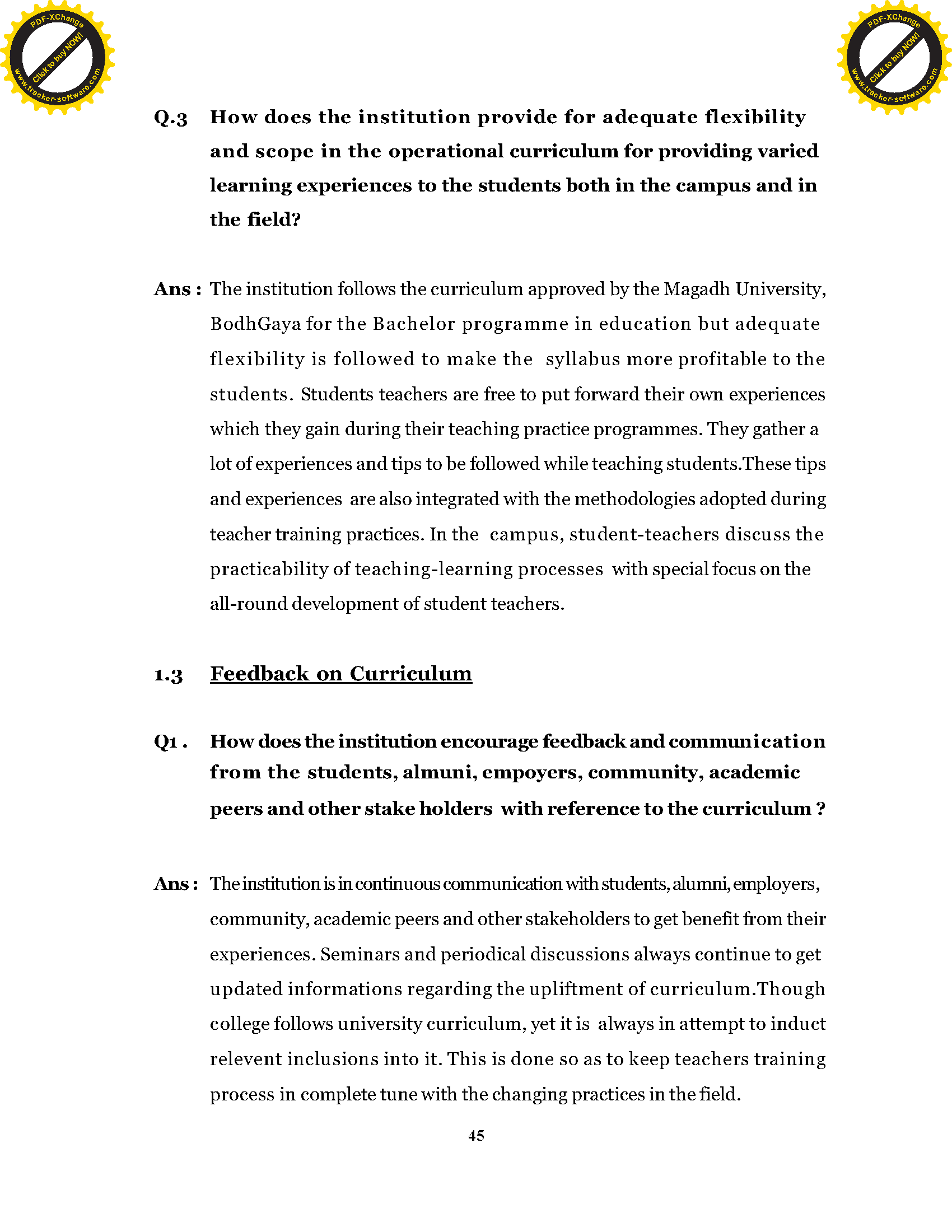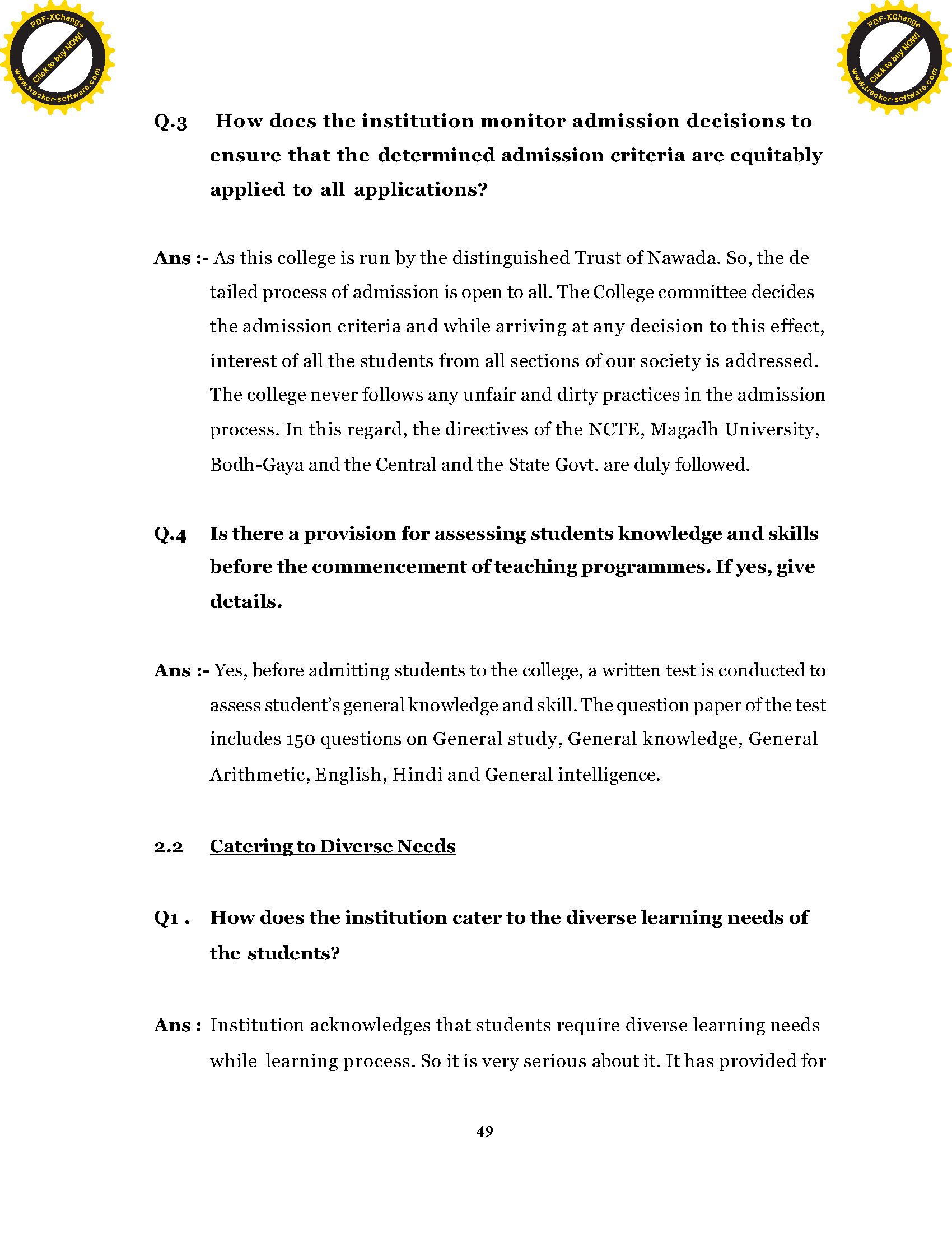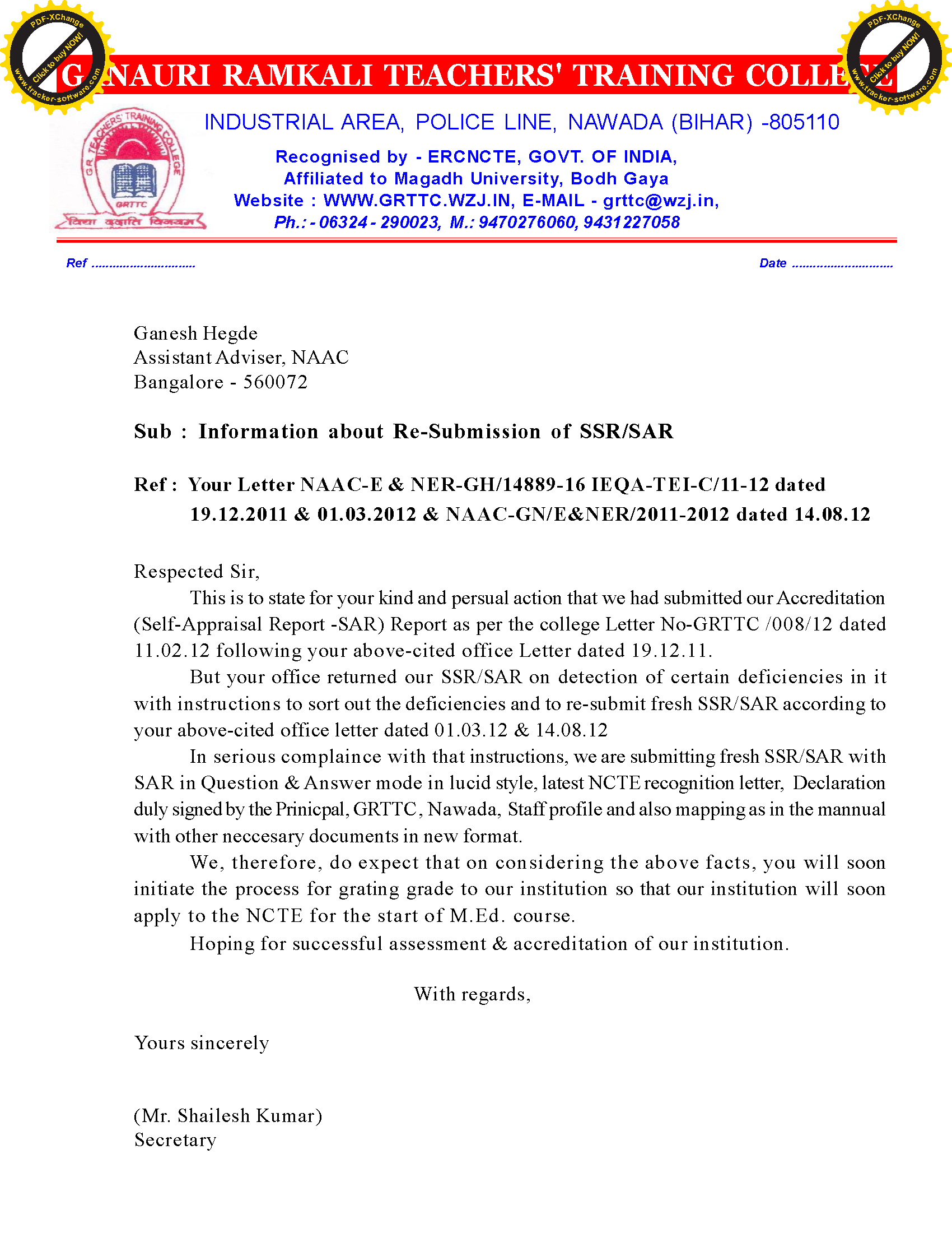 Ganauri Ramkali Teacher's Training College, Nawada (Bihar) - SSR (NAAC)