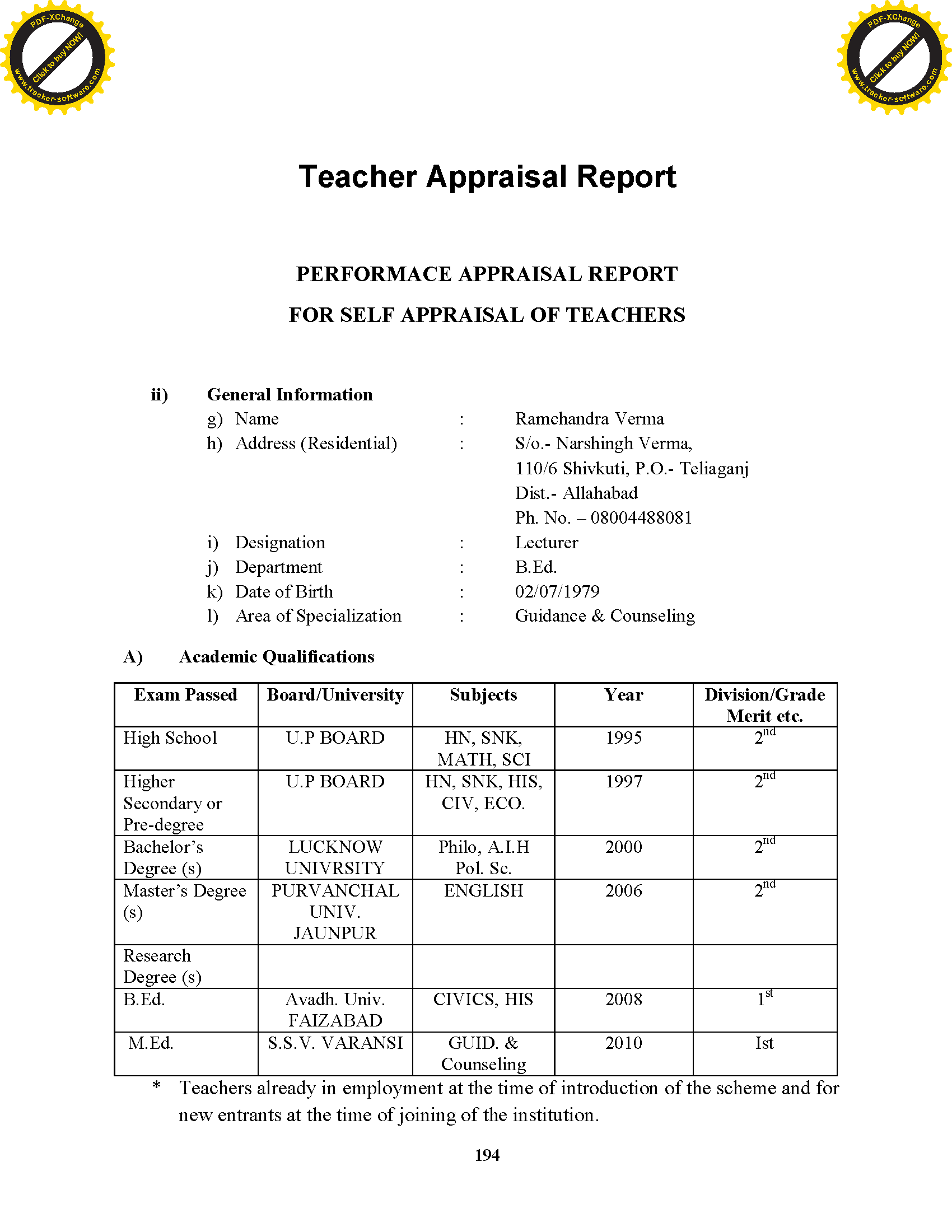 Teaching Staff - M.Ed